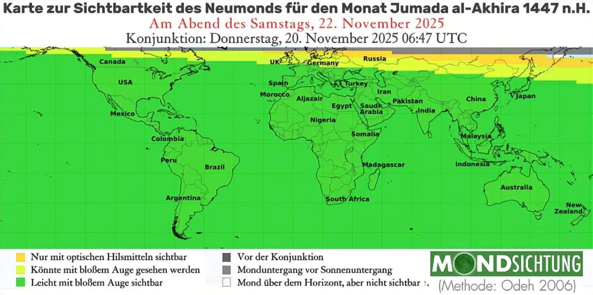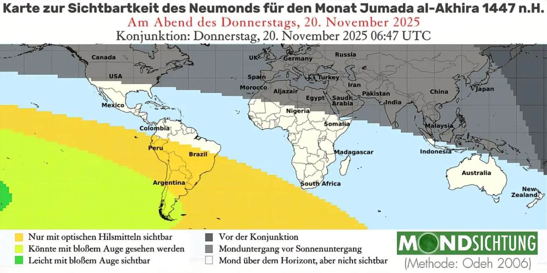 Sichtbarkeit des Neumonds zum Beginn des Monats Jumâda al-Ākhirah 1447 n.H.